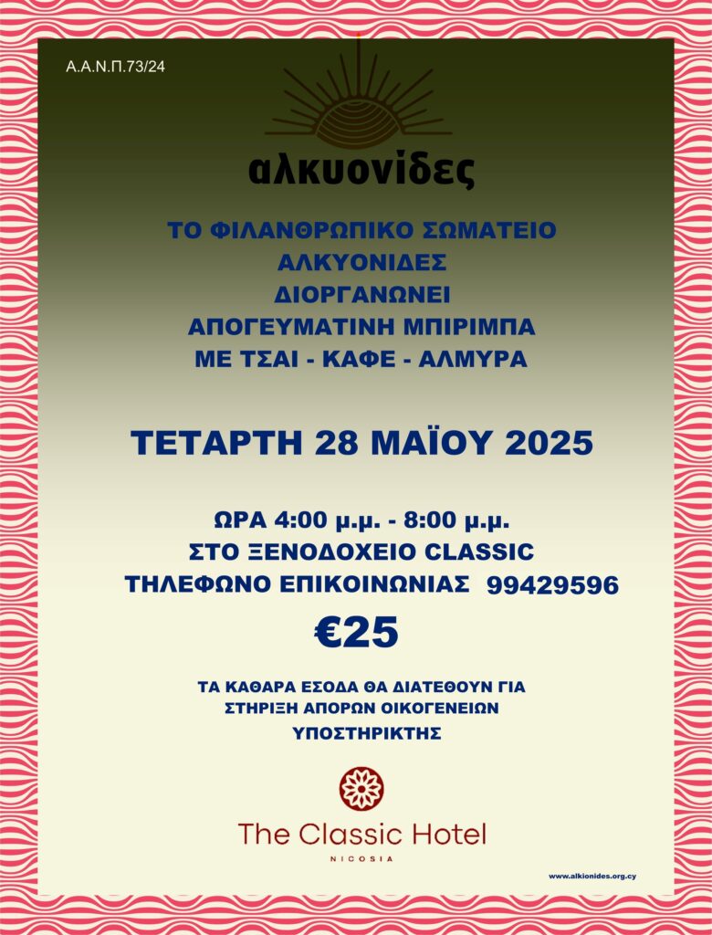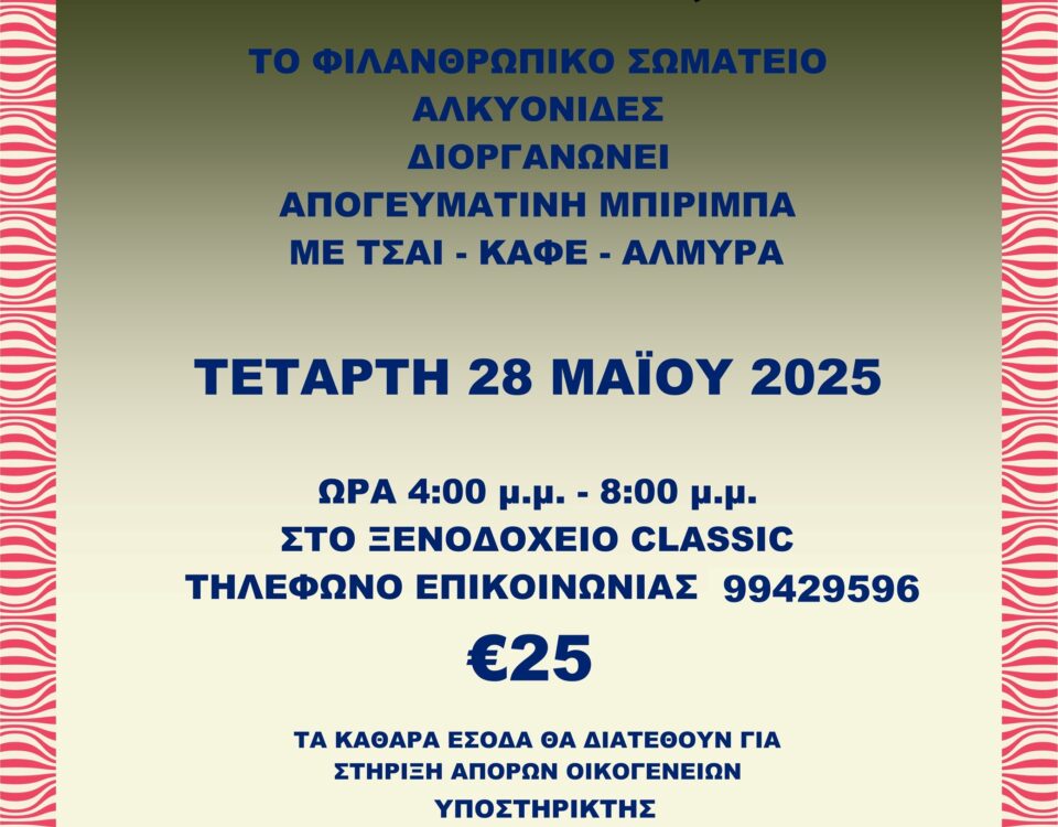 διοργανώνουν Φιλανθρωπικό Δείπνο, την Τετάρτη, 14 Μαϊου 2025.
